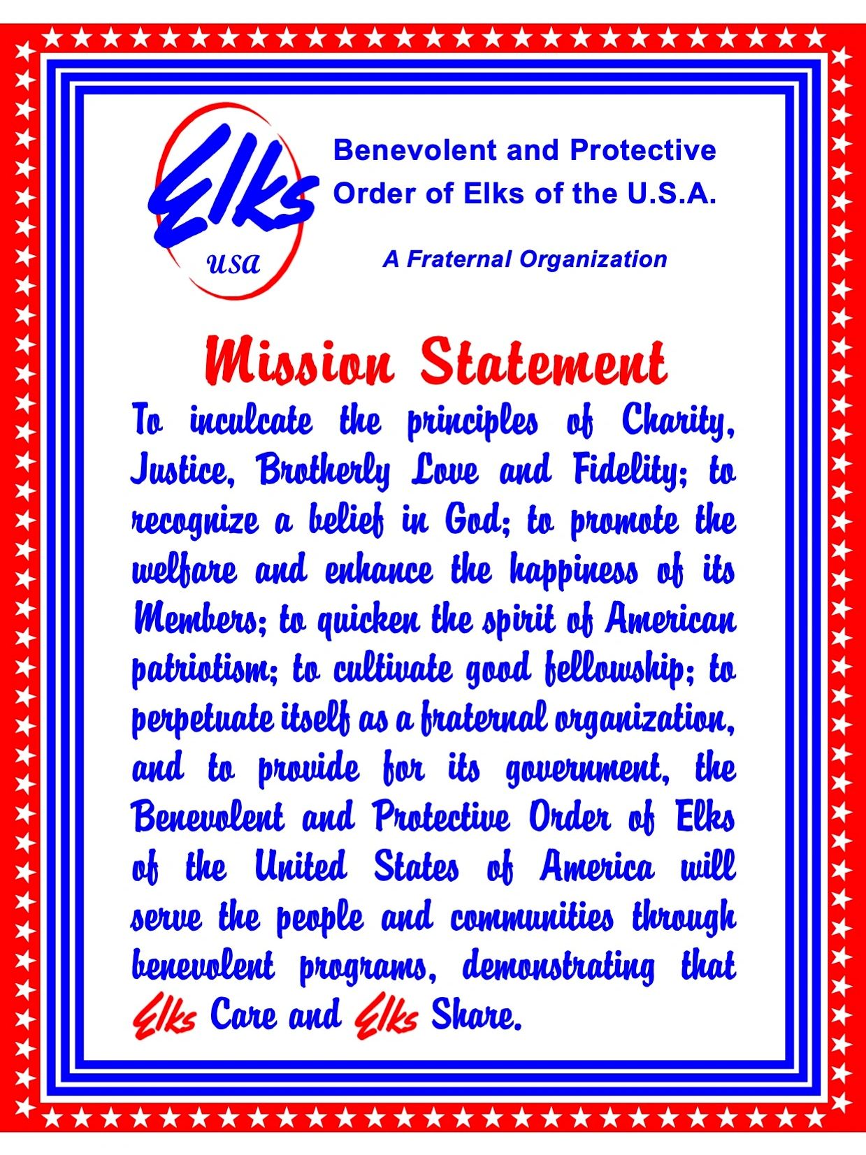 Click Mission Statement or link below to Learn About the Elks